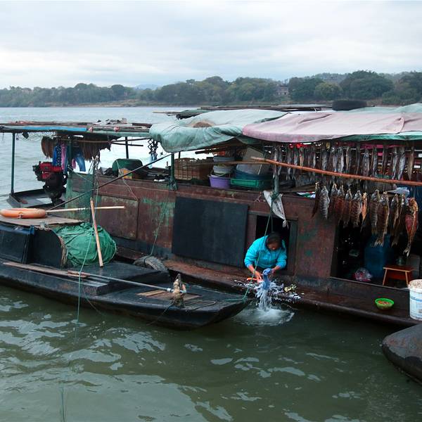 浮桥两岸及上下游风光。这里的渔家平常靠打鱼为生,打到鱼后新鲜的能现卖最好,卖不去的就腊起来慢慢的卖赣州古浮桥学名叫惠民桥,又称东津桥、东河浮桥。