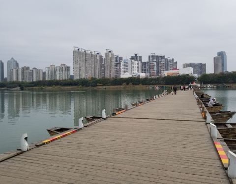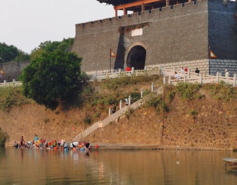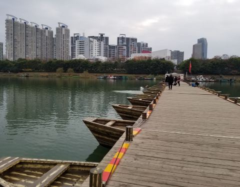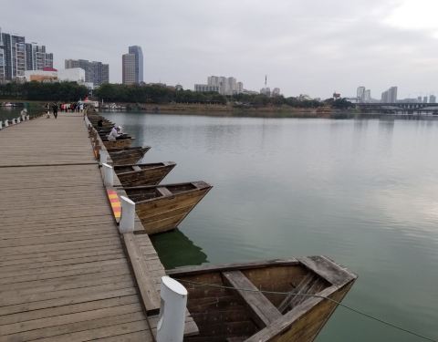 如果加以规划和修饰,完全可以与苏州老巷媲美,不过那又得大动手脚一回,还是顺其自然吧接着我们到了建春门浮桥,这座浮桥横跨于贡水之上,比章江浮桥要长。据称始建于南宋,当时的知军洪迈主持修建,所以又叫“洪桥”。浮桥都是用木船为基础架构,锁以铁链。如果过船,就不方便了,对漕运有一定影响...接着我们到了建春门浮桥,这座浮桥横跨于贡水之上,比章江浮桥要长。据称始建于南宋,当时的知军洪迈主持修建,所以又叫“洪桥”。浮桥都是用木船为基础架构,锁以铁链。如果过船,就不方便了,对漕运有一定影响。两边的渔船们只得各自为政。我们想踏过浮桥找地方吃午饭,过了桥才发现附近没有饭店,只有几个瓜农在卖香瓜。于是我们每人吃了一个香瓜,水分有,却不太甜。吃完我们回到浮桥另一头的古城墙边,出建春门走入市区大街,找到了一家小餐馆点了两个家常小炒,吃过午饭,然后翻出地图,准备去文庙。路过皂儿巷,被这里的老房子惊动了一把,雕窗画栋,青砖青瓦,地上还铺着一两道鹅卵石。进入小巷走了一段,就遇到有人在拍婚纱照,从所着服装看应该是民国情调,很符合皂儿巷的风格。在赣州,保留了许多民国时期的建筑。巷子里居住的都是现代市民,时不时看到一些机动车停靠在一侧,也有把内衣挂在外面的。如果加以规划和修饰,完全可以与苏州老巷媲美,不过那又得大动手脚一回,还是顺其自然吧。 展开 2022-03-06 01:43