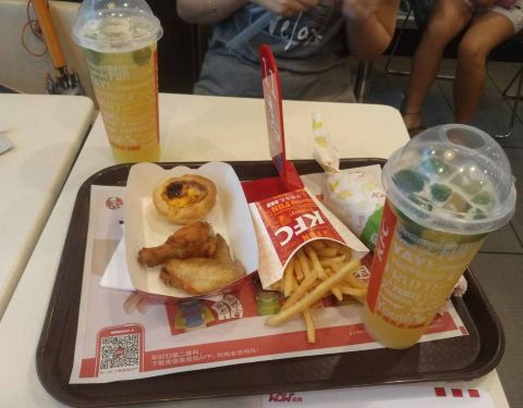 今天下午下了很大的雨,週圍都在打雷。本來想着到牛肉麵店吃麵的,可是到了才發覺店內停電。便繼續行。來到君盛百貨,看到有家KFC,便想試試看,因為記得之前這裏的咖哩飯也很美味。但發現原來沒有飯吃了。最後點...今天下午下了很大的雨,週圍都在打雷。本來想着到牛肉麵店吃麵的,可是到了才發覺店內停電。便繼續行。來到君盛百貨,看到有家KFC,便想試試看,因為記得之前這裏的咖哩飯也很美味。但發現原來沒有飯吃了。最後點了漢堡餐。