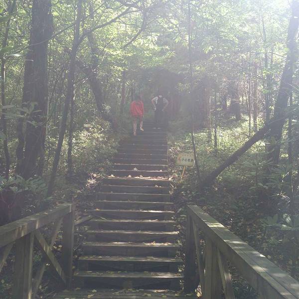 从油草河上游万胜坝七里沟 , 登上绝顶玉皇寺 , 入大风堡原始森林 , 像进入一座天然迷宫和自然博物馆。只见原始森林里 , 古藤垂悬 , 地上是厚厚的落叶。这里的植被很富有层次性 , 山下长满灌木和常绿乔木阔叶林 , 如杜鹃、紫云英、山槐、野鸦椿、猕猴桃、酸梅、金合欢、五倍子等植物 ; 山上长满青杠、毛榉、板栗、黄杉、野樱桃、巴山松、苦桃、楠木、红豆木等。