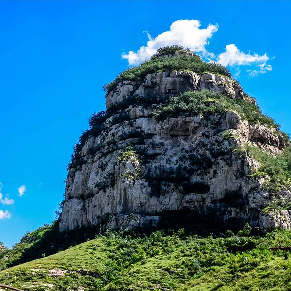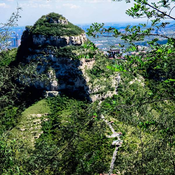 它东临华北平原,西接太行群峰,一峰突起,峥嵘雄秀,四周皆是悬崖绝壁,远望犹如巨佛仰卧,眉目毕肖,其山顶平旷坦夷,有良田沃土660亩,土层深达66米,异境别开,草木繁茂,恍如世外桃源。