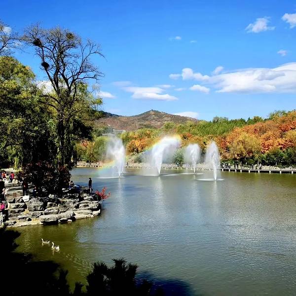 2. **文化遗迹**:公园内不仅有自然景观,还有多处历史遗迹和文化景观,如北宫遗址、古塔等,这些遗迹见证了千年文明的变迁,为游客提供了深入了解历史的机会。