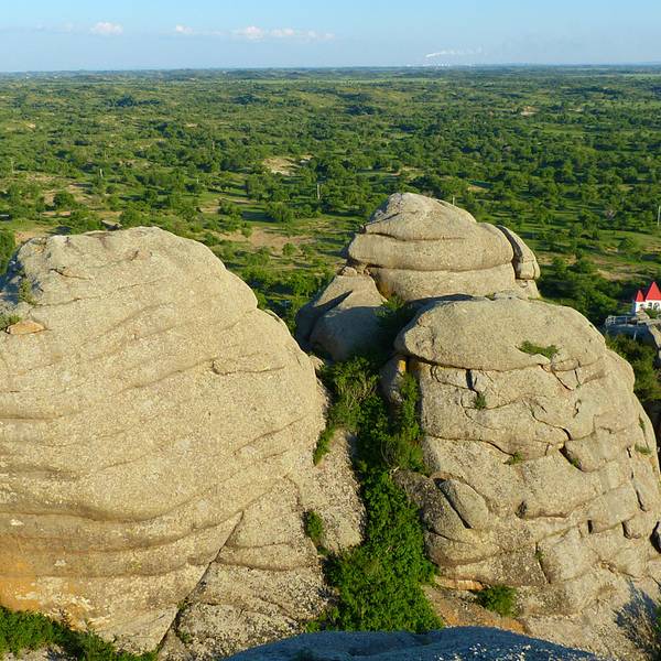 这里的村庄建设规划的很好,一排排红顶的房子在草原上很添彩,整齐的村美丽的一隅。夕阳斜下我们在草原上曼陀山位于赤峰市克什克腾旗西部,内蒙古自治区四大名湖——达里湖的南岸,“曼陀”寓意神仙居住的地方。清晨站在曼陀山上俯瞰小村庄全景