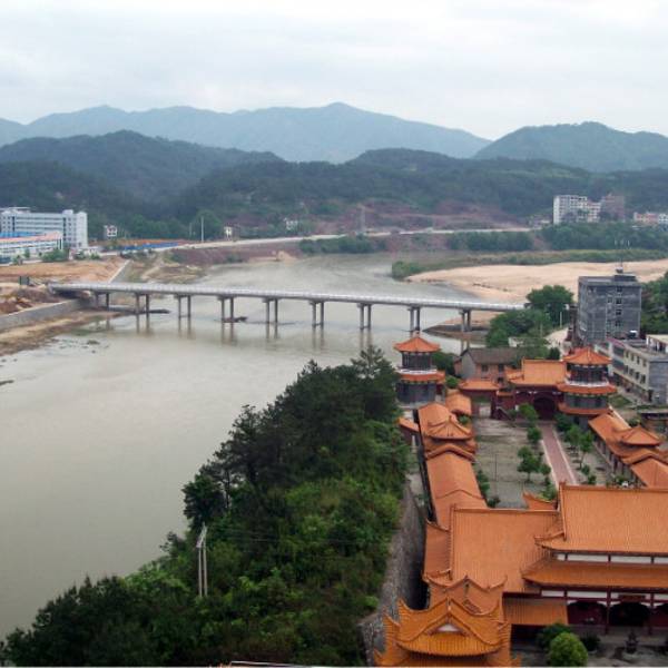 赣州坐车43元2.5小时往宁都县。首先游览位于江边的县城标志——永宁古寺(免费),最醒目的是建在小山坡上古朴而精美的多层高塔,也是最有价值的文物(其余规模较大的佛殿群均为现代重建),塔内很昏暗,狭窄的楼梯有规律地交错环绕而上,每层均有回廊可远眺县城与河滨风光。