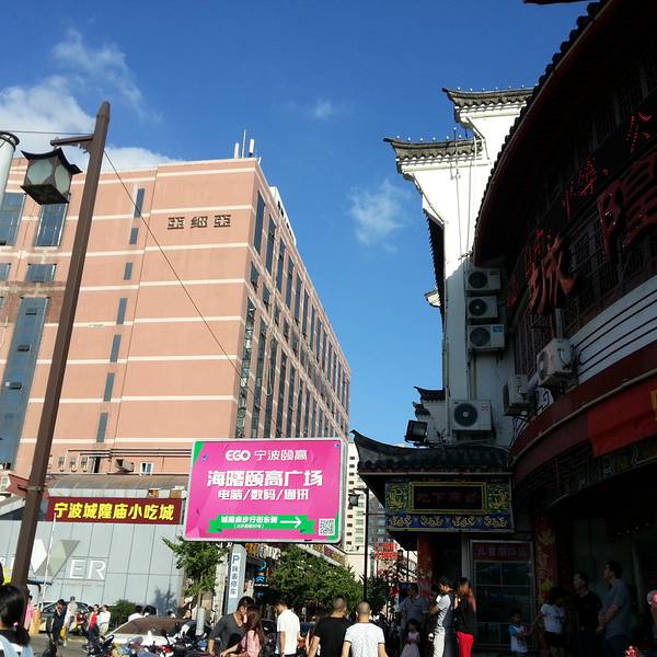 热闹的老牌商业中心,边走边逛,尝宁波特色小吃。