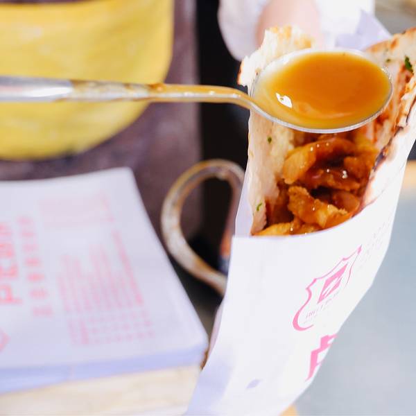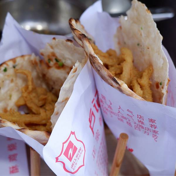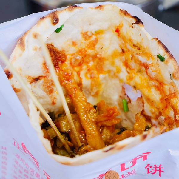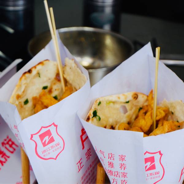 再然后就是刷上你喜欢的酱汁啦【店名】 卢记烧饼.鸡柳饼(城隍庙)