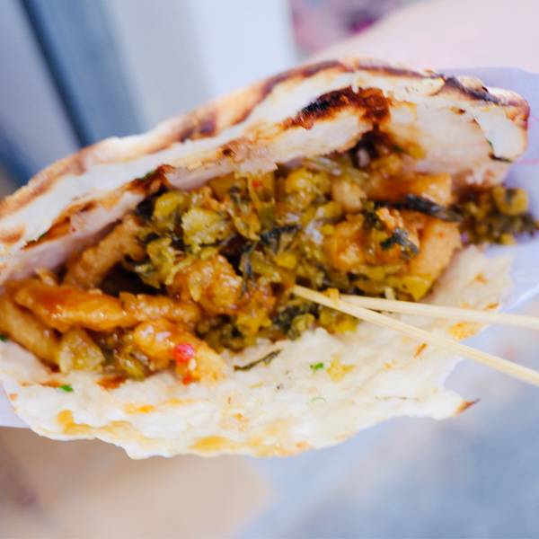 可以是单独的一个葱油饼,也可以里面是有鸡柳的豪华版。