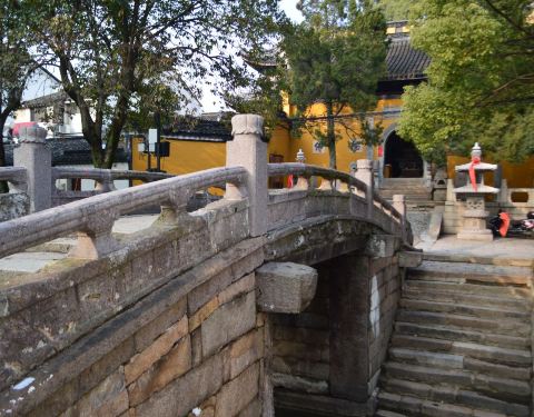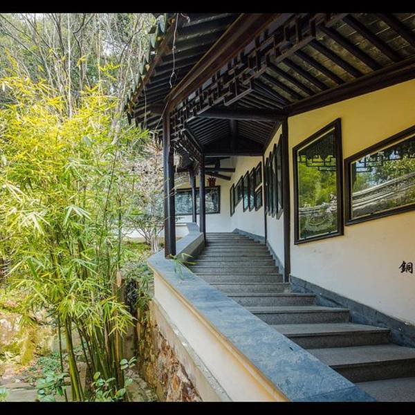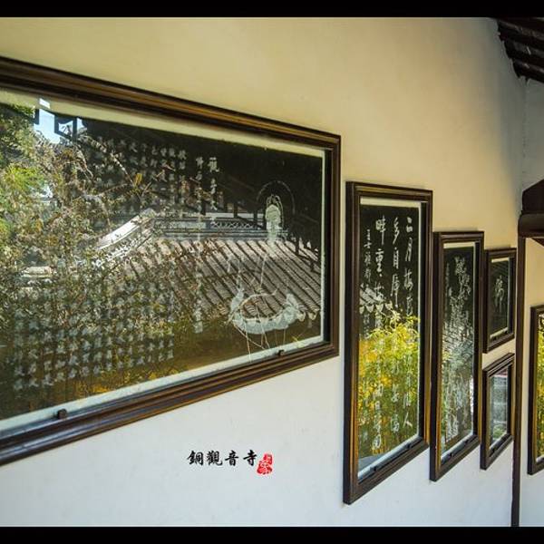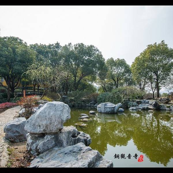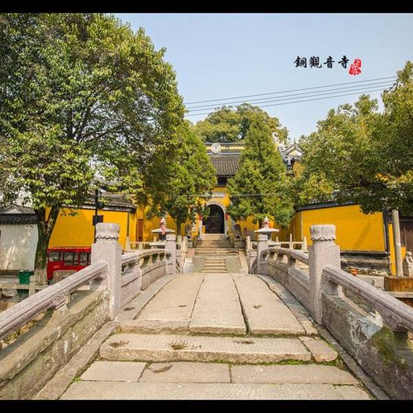 那么这座桥看似普通实际大有来头!铜观音寺前的这座桥,为梁式石桥。因与寺门前石阶连成两个凹形的轴对称图案,民间俗称“翻转桥”。栏杆、锁口石、压顶石均以武康石凿成,扣之有声,铿锵作响,故称琵琶桥或响石桥。桥上石雕云龙和万字纹图案,古朴遒劲,线条流畅。寺桥十分古朴。桥长16.1米,宽3.05米,梁式,两侧沿口为武康石质,雕凿着双龙戏珠,万字纹饰,琢工精良,为宋代旧物。是不可多得的宋代石桥的实例。过了桥,就可以看到4A级景区铜观音寺。大雄宝殿之前左右各有钟楼,鼓楼一座,气势非凡院内这颗明代的香樟树据说已有800多年的历史。沿着右手边的楼梯直走,一幕幕历史从眼前划过。倒影在壁画中的寺影颇有禅意。细细的长廊通过长廊可以看到大部分观音寺都会设的送子阁走过茂林早觉这扇门后,可以看到一条常常的小路,曲径通幽。一直向前走可以看到一个新建的茶室供游客歇息,赏花。寺前的龟池亦是观看佛塔倒影的最佳场所,不过因为目前树林枝叶繁茂视线略受阻挡。向前可进入光福寺塔院。如果不走小路,径直从右手边也可以进入光福寺塔院。到达塔院前会经过一个墨泉。【墨泉】
