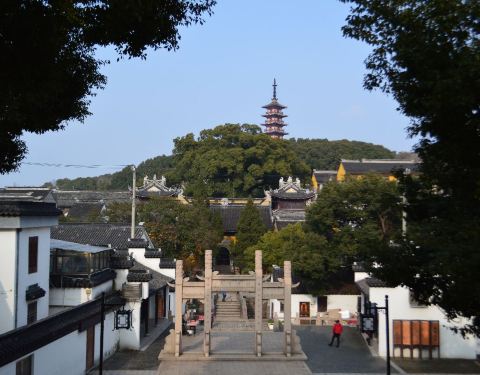铜观音寺最引人注目的建筑就是其后院的光福塔,始建于南北朝时期,有一千多年的历史。这座大殿里供奉的是铜观音,据说铜观音非常灵验。苏州的寺庙建筑风格与别处不同,都精巧如园林。经过这座院门直通后院的光福塔。眼前的这座光福塔是后来重建的,游人可以登顶观光,窄小的通道只容一人通过,需要十分小心才行。登到塔顶,四面墙壁上写满了各种到此一游,这是中国旅游的特色。塔顶四面透风,可以观看近处的楼房,远处的青山,层次分明,而不远处的一片湖面也是景色旖旎。寺内的环境非常好,有不少古树,这一株古香樟也是这里的镇寺之宝,粗大的树干需两人合抱。 展开