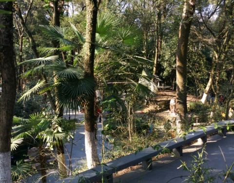有许多老人在上面散心!还有广玉兰!山上环境清幽