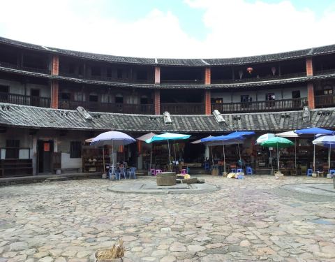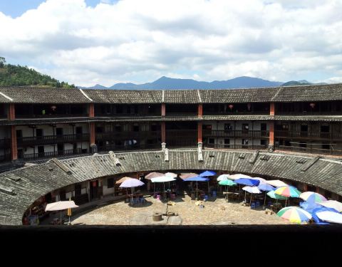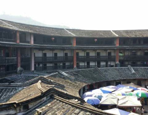 大地土楼群中最重要的一座,这才是真正的土楼王呢。有内外两圈,设计独特,内圈是厨房设计,外圈从一楼起都可住人,这是我看到唯一一座如此科学设计的土楼,一般都是一楼作厨房的;而且整个土楼平分出各个单独小院落,在顶楼有隐通廊,既可以作为大家串门通道也作为战时的防御场所。这座楼的备战功能非常强,大家可以仔细找找。