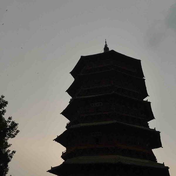 我猜这个地区的地势一定很平坦,因为从高速公路上,远远就能看到应县木塔的轮廓。