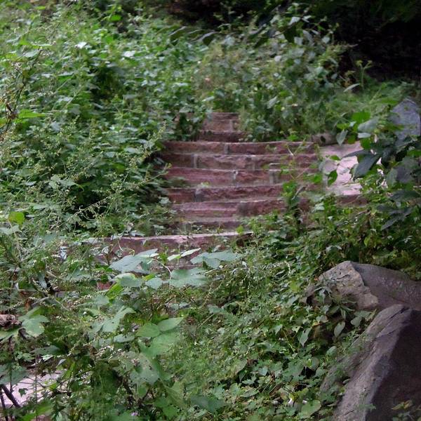 我们翻过铁丝网,沿着宽敞的台阶缓慢上行。看到大门紧锁的公共卫生间,想必此处真的很久没有工作人员管理了。