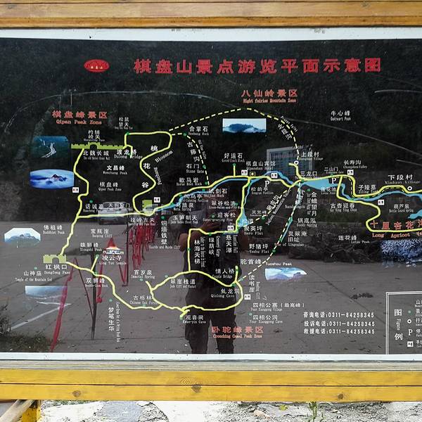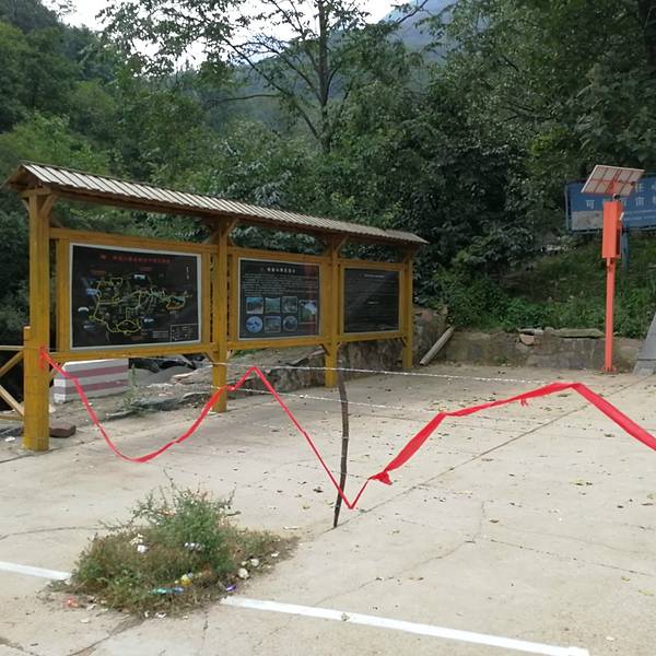当我们在有限的时间内“历尽千辛万苦”驱车赶到棋盘山景区时,在景区门口发现了这样一个布告牌子: