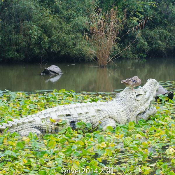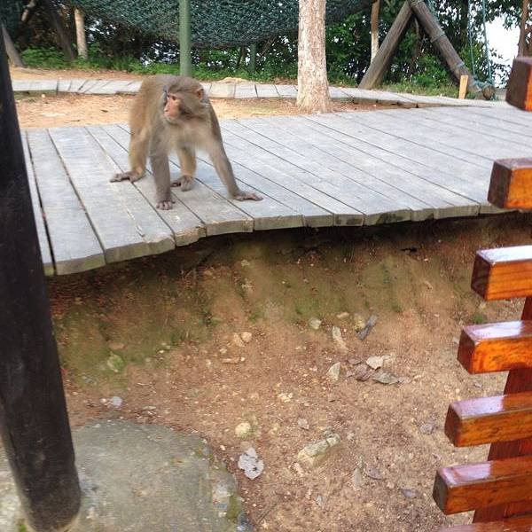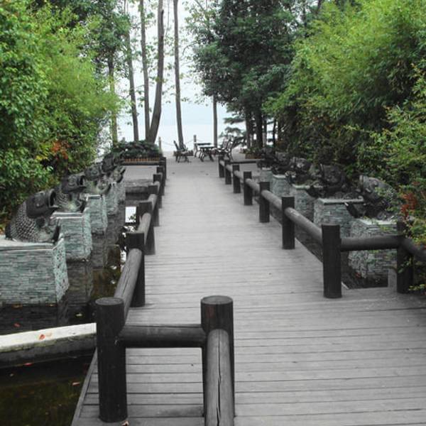 岛上有完整的观光徒步道路,建有不少休息的地方,可以坐下来喝茶,或者仅仅是休息一下,经过一片湖面,旁边有一道瀑布,是这个岛上的一大看点。沿着栈道往另外一个方向,有很多动物和鸟类,像是一个小型动物园,空气非常好,除了树就是竹子,终年常绿。