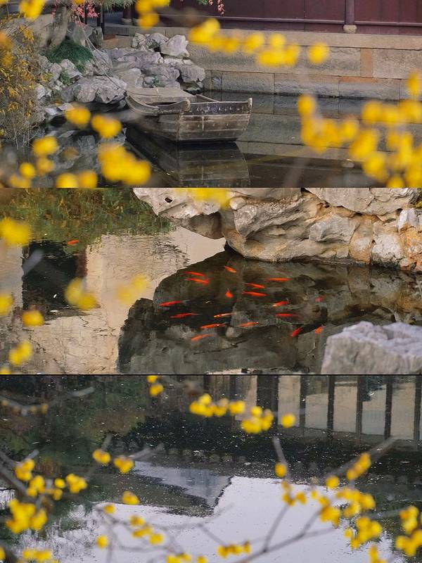 艺圃里的腊梅是临水而生的,独具意境,园子不大,却静谧得如同世外桃源。🍃