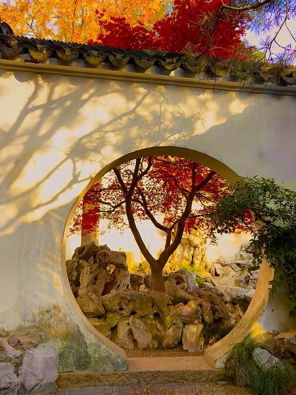 苏州的秋天,就像一幅生动的画卷,绽放出绚丽的色彩✨。这里的园林在秋冬季节仿佛有了灵动的生命,特别是在下午,阳光透过蓝天洒进园中,斑斓的光影交织,仿佛为每一处留下一笔诗意的美学🖌️。 当阳光洒在墙...