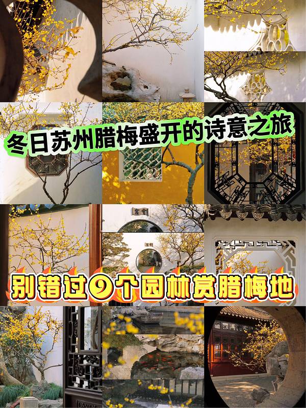 冬日苏州:腊梅盛开的诗意之旅❄️🌼 这个冬天,怎能不来趟苏州呢?即使错过了红枫银杏的绚丽,腊梅的芬芳依然能弥补遗憾。在温暖的月黄昏,腊梅的暗香轻轻飘荡,配合着园林里的花窗,令人不禁感叹先辈们的独特审美!🥰 这里整理了一条冬日腊梅的City Walk路线,让我们一同走入冬季的苏州,体验那份专属于这个季节的浪漫吧! 🌼苏州冬日腊梅City Walk Day 1:北寺塔 → 拙政园 → 狮子林 → 居士林 → 曲园 Day 2:怡园 → 网师园 → 沧浪亭 → 艺圃 → 留园 1⃣ 北寺塔 北寺塔,充满禅意的地方,这里是苏州仅有的黄墙腊梅,细小的花朵在黄墙映衬下显得格外雅致。🌼 2⃣ 狮子林 狮子林的腊梅在苏州当之无愧数一数二,漫步其中,步步有景,窗景与框景交相辉映,真是让人留连忘返!🏯 3⃣ 居士林 这个静谧的地方,腊梅的形状颇为独特,数量不多,最适合静静地欣赏它的美。💖 4⃣ 曲园 & 怡园 这两个园子靠得很近,适合一起打卡。曲园的腊梅虽稀少,只有一棵,但可以拍到花窗的绝美景象;而怡园的腊梅比较分散,开得也较早,有如一幅春意盎然的画卷。🎨 5⃣ 网师园 网师园的腊梅数量惊人,尤其是云窟里的腊梅,与月洞门的结合,为你呈现出别样的风情。🌙 6⃣ 沧浪亭 沧浪亭里的花窗美得让人心醉,尤其适合拍人像照,留下温暖的冬日记忆。📸 7⃣ 艺圃 艺圃里的腊梅是临水而生的,独具意境,园子不大,却静谧得如同世外桃源。🍃 趁此冬季,不如来一场与腊梅的约会,感受苏州的冬日魅力吧!✨