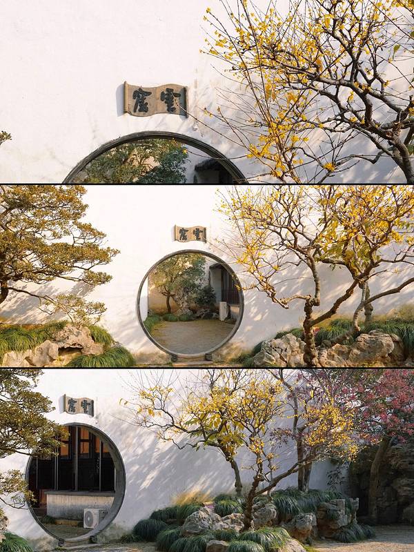 网师园的腊梅数量惊人,尤其是云窟里的腊梅,与月洞门的结合,为你呈现出别样的风情。🌙