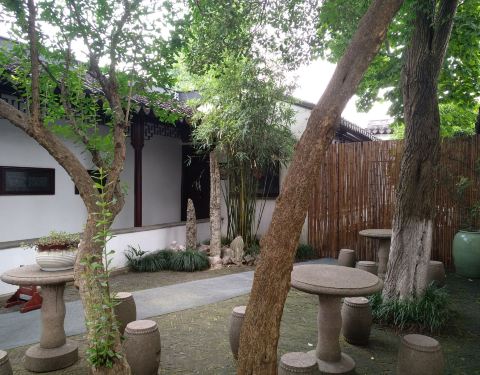 俞樾故居又称为曲园位于苏州市姑苏区人民路马医科43号,乘坐市内公交305、32、146、204、602到景德路,然后穿过小巷子走几分钟就到。曲园是个免费的景点,坐落于粉墙黛瓦的平房居民建筑群中,可谓闹中取静,曲园有三扇黑漆大门,平日里其他两扇门是关闭的,从正门进入轿厅,厅堂正中挂着园故主人俞樾的画像,轿厅后面是知乐堂,厅堂又大又宽敞,曲园西部为著名的春在堂,取自俞樾名句“花落春仍在”,平日里这个景区游客很少,除了几个工作人员走出走进,几乎是一个人的园林,卫生也打扫得很干净,环境清幽安静,庭院里的大树下摆放着石桌石椅,供游客歇息,春在堂宽敞明亮,靠西面的墙壁一溜书柜里摆放着书,看得出原来的主人是个读书人,堂后是一间小室,摆放着一桌四椅,站在小室,可以从窗户看见整个后花园的景致,花园不大,但假山水榭、亭子桌椅、花木扶疏,十分清雅宜人,花园里有一个会议室,拐角处的庭院一角也摆着几张石头桌椅,春在堂内还摆放着一架黑色的钢琴,曲园附近有菜场、各种小吃摊位,用餐不成问题,可以品尝一下曲园斜对面的蟹壳黄,有甜有咸,也可以品尝附近嘉余坊同德兴的苏州一碗面,味道很赞,曲园附近有怡园、听枫园、环秀山庄等景点,离观前街也很近,门票不贵,建议可以顺道一路参观一下,附近有旅店和连锁酒店,住宿方便。