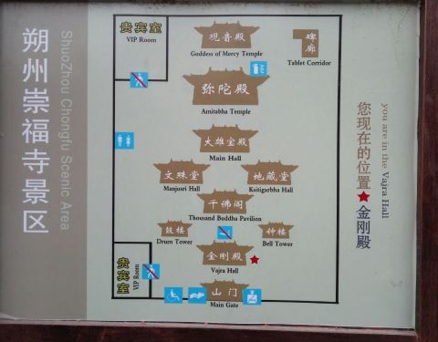 殿内佛坛上巨大塑像及巨大背光,像高9米,背光高14米,让人震撼。寺附近还有一长截土城墙今年七月底去的,朔州火车站旁坐6路公交车,玉百商贸站下车走不远就到了。寺附近还有一长截土城墙。 崇福寺是全国三大辽金佛寺之一,主殿弥陀殿是金代建筑,它的彩塑、壁画、棂窗、匾额、琉璃饰称为“五绝”。弥...今年七月底去的,朔州火车站旁坐6路公交车,玉百商贸站下车走不远就到了。寺附近还有一长截土城墙。 崇福寺是全国三大辽金佛寺之一,主殿弥陀殿是金代建筑,它的彩塑、壁画、棂窗、匾额、琉璃饰称为“五绝”。弥陀殿面宽七间,进深四间,走入里面,觉得真的好大。殿内佛坛上巨大塑像及巨大背光,像高9米,背光高14米,让人震撼。(所附的图是我买的崇福寺介绍一书中的) 展开
