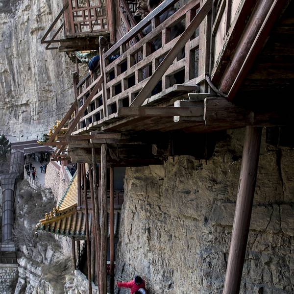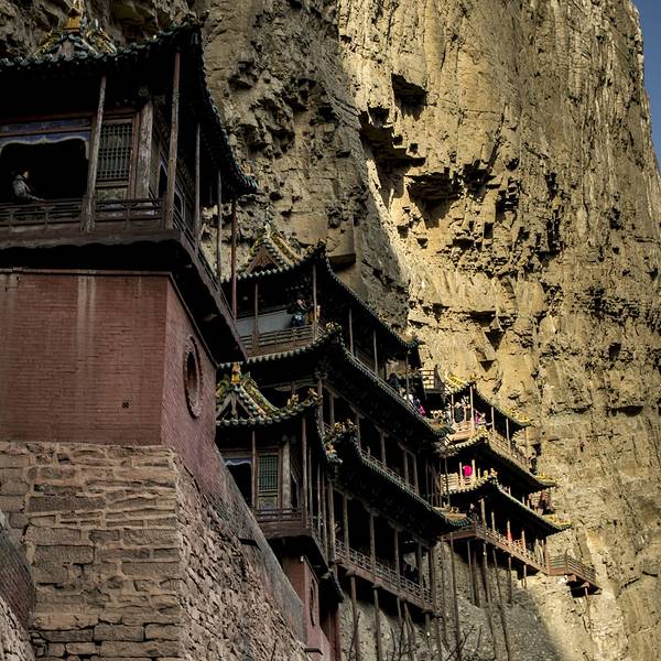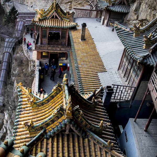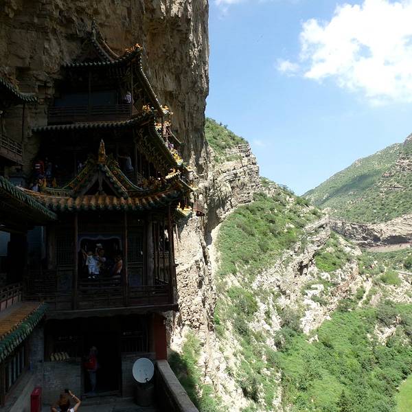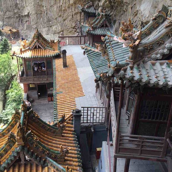 悬空寺悬空寺建成于公元491年,是佛、道、儒三教合一的独特寺庙。登上悬空寺,不得不感叹古人的智慧。寺庙建于陡峭的岩壁上,建筑也是很有特色。