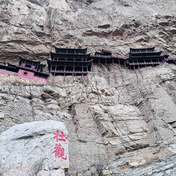 实用 李白在这里留下了两个字:雄伟悬空寺寺如其名,真的是紧贴悬崖峭壁而建,从下面看就是几根木棍支撑着众多寺殿,不得不感叹古人的伟大。在悬空寺下方有一个大石头🪨,上面写着“壮观”两个字,而且“壮”字上多了一个点,据说是李白来这里游...悬空寺寺如其名,真的是紧贴悬崖峭壁而建,从下面看就是几根木棍支撑着众多寺殿,不得不感叹古人的伟大。在悬空寺下方有一个大石头🪨,上面写着“壮观”两个字,而且“壮”字上多了一个点,据说是李白来这里游览的时候留下的字,那多出来的一点也李白原汁原味的字迹。