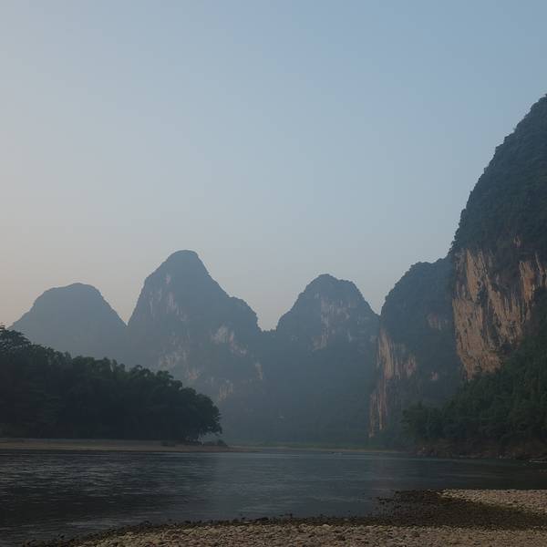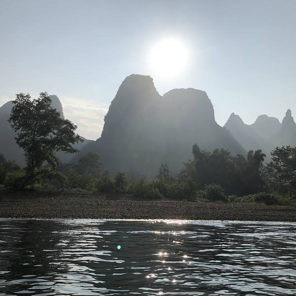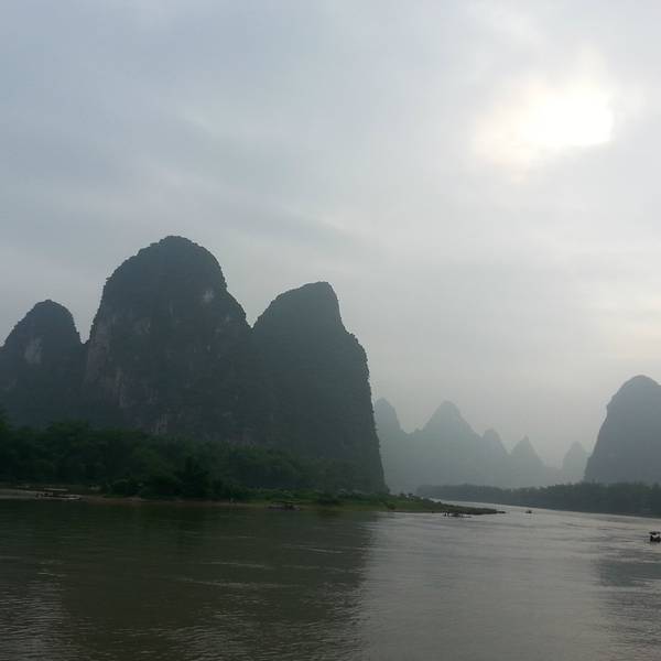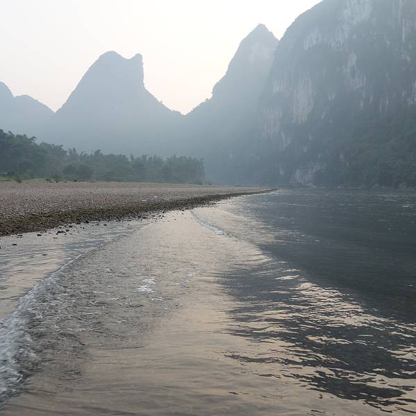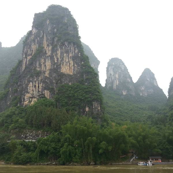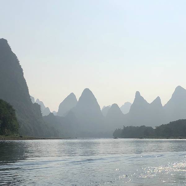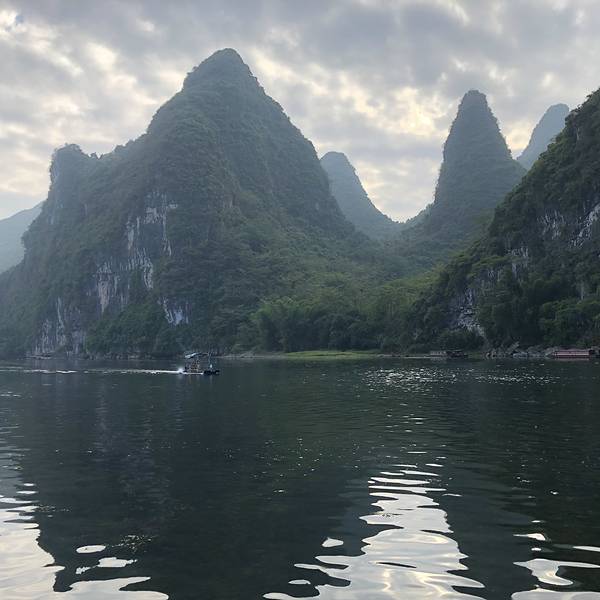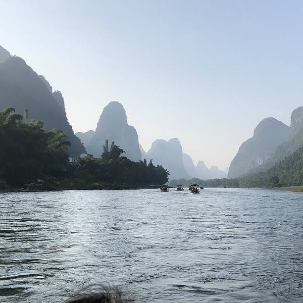 早上漓江坐船的人也不多。然后我觉得伐工态度不是很好,可能是太着急了,由于是私伐所以不能开很久,到了九马画山也让我们不要走远了要急着赶回去,所以没呆多久就返程,7点就靠岸了,不过路上一些景点一些山都有指给我们看告诉我们。