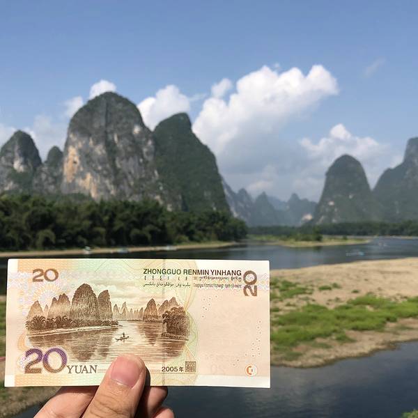 每张人民币纸币后都有一个风景,人民币20元背后是桂林山水的景色,取景地为桂林漓江游船的兴坪古镇周边,这也是我去桂林的目的之一,从兴坪古镇走过去大概5分钟,拍摄20元背后的地点在某个区域,而这个区域内,又有好几个所谓“最佳拍摄点“,游客去那里拍照是免费的,如果要他们帮你拍摄成相照就要收费了,我认为20元最佳拍摄点是一个叫”漓江第一景“的区域,中午左右去拍的话不会被树给遮挡住,但是再怎么拍,和人民币20元背后始终会有所不同,因为拍摄20元的时候,水位是很高的,现在去的话属于枯水期,有些地方已经成为了陆地,就当打卡吧。 展开