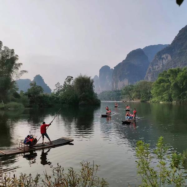 实用 一路带我们讲解,船开的也很缓慢让我们尽情观赏!带队师傅是粟师傅,年龄不大但态度特别好!不虚此行这次是一家三口自驾游去的,在网上订的票110/人加上一个空位和往返一共410元。定好票联系好了明天一早直接去杨堤码头找到自由自在旅团然后联系好了去找师傅。下车会有好多婆婆卖鲜花头花2/个,不贵带着玩玩也挺漂...这次是一家三口自驾游去的,在网上订的票110/人加上一个空位和往返一共410元。定好票联系好了明天一早直接去杨堤码头找到自由自在旅团然后联系好了去找师傅。下车会有好多婆婆卖鲜花头花2/个,不贵带着玩玩也挺漂亮!😊去了直接找到师傅上竹筏!一路被竹筏的壮大队伍惊呆了!(由于是北方人这种山水见得很少),一路上狂喜!带队师傅是粟师傅,年龄不大但态度特别好!一路带我们讲解,船开的也很缓慢让我们尽情观赏!到了可以拍照的地还问我们要不要下去,态度相当好!每当我们要拍照师傅就会停下船等我们拍完再走,还会提醒我们注意安全。赞一个!临去是阴天到了九马画山就开始下雨而且是暴雨!桂林天气真是说变就变雨水也是来去自如。最后太大去上山躲雨。暴雨一定要躲雨不要前行,回去的时候看见有躲雨不急的翻船了太恐怖!总之一路玩的非常开心!桂林山水甲天下果真名不虚传!不虚此行! 展开