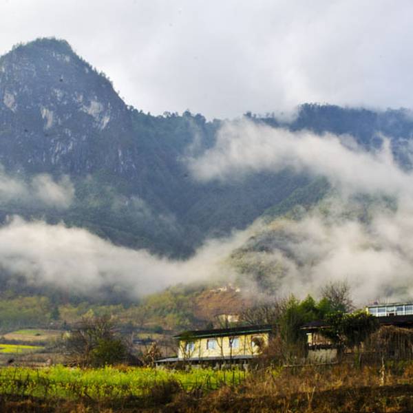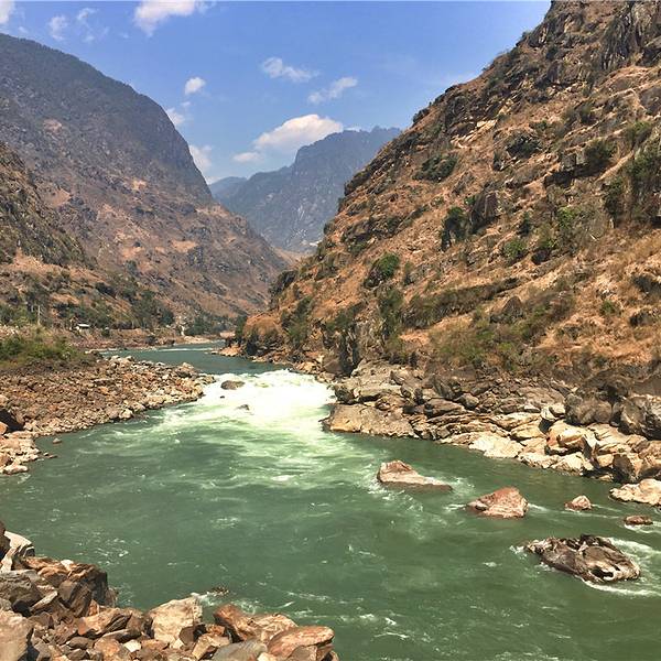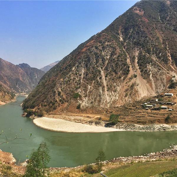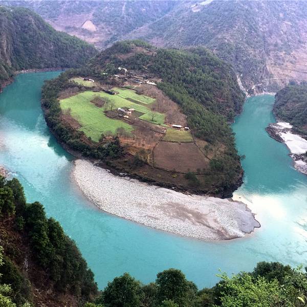 丙中洛风景区位于怒江僳僳族自治州贡山独龙族怒族自治县的北部,是滇西北三大山脉(高黎贡山、独怒山、云岭乡)与三江(怒江、澜沧江、金沙江)形成倒“川”字的“三江并流”核心区,怒江自北向南贯穿全境。丙中洛正是怒江峡谷深处难得一见的开阔台地,以秀美的田园风光而著称。游玩丙中洛,较为主要的几个点分别是:石门关、秋那桶和丙中洛田园风光。 奔腾的怒江自青藏高原穿越山谷而来,在滇藏交界处的贡山县丙中洛镇日丹村附近受到大山的阻隔,江水流向从由北向南改为由东向西,流出300余米后,又被丹拉大山挡住去路,只好再次调头由西向东急转,在这里形成了一个半圆形的大湾,而这里,也被认为是丙中洛的标志性景观。