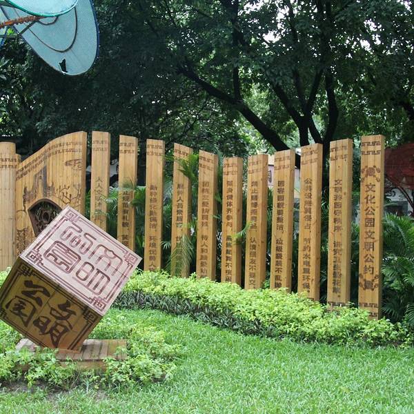 公园里有棋牌娱乐室,文体活动室,园林参观区,茶艺室等,娱乐休闲设施多样化。还有一些仿古建筑,园林设计,人像雕塑,是一个集合休闲、锻炼、参观游览于一体的文化公园。公园里的汉城建筑。文化演艺中心,有中老年人在这里跳舞。演艺中心前的园林。西关苑里面有园林,和西关的房屋建筑结构,还有一些介绍。西关苑的园林。园林周围是一些西关的厢房建筑,有一些壁挂介绍,园林设置的很巧妙,夏天可以在此乘凉。公园园林,文化公园公约。公园的雕塑,以鲁迅先生的小说人物为题材的雕塑。雕塑-祥林嫂。园林里还有一些公园的花式灯箱,晚上开灯的时候很好看。公园里还有一些展区,可以好好的观赏。公园南门