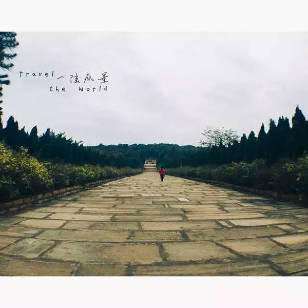 通往陵墓的石板路很壮观,周边草木葳蕤,小有景色