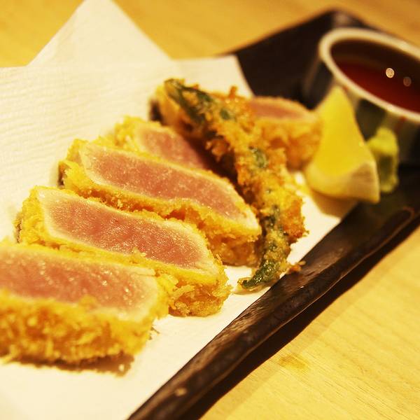 五行拉面位于锦市场旁,是一家创形式日式拉面店,深受当地人以及游客的喜爱。门店看着不大,但里面确实别有洞天,既有日式的榻榻米也有吧台,传统与现代的融合产生出特有的韵味。拉面的口味除了融合了博多一风堂的浓厚外,还形成了自己的独特的视界体验,最特点的就是焦味面,有酱油汤底和味憎汤底,味道都很特别,但是口味稍重,吃不惯的可以点猪骨汤汤底,会清淡一些。拉面而这家除了拉面之外,其他的肉类菜品确更是深得我心,尤其是牛肉,5-6成熟,嚼在嘴里相当嫩滑。我们几个饿狼几乎是上一盘光一盘的速度,可见菜品的美味。餐前小菜超好次的牛肉!5炸鸡虽然晚饭的主食又是拉面,单肉菜的美味完全慰藉被勒了一下午的胃。