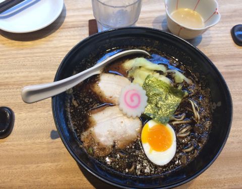 在京都锦市场里吃到了一家很有特色的拉面,跟前面几天吃到的传统日料不太一样,门外面虽很不起眼,却需要排队,进来后发现里面还有别致的庭院,楼上有很大的空间,店里的特色就是黑焦酱油、黑焦味噌面之类的,味道很特别,到这边来了可以过来尝尝