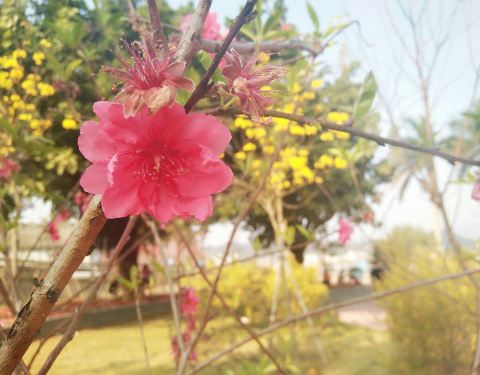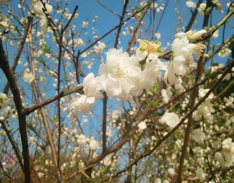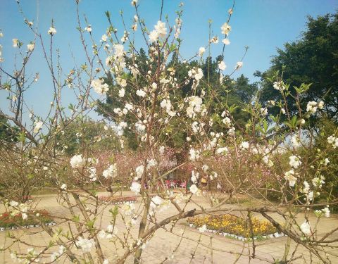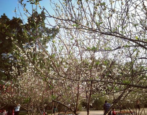 ...渐凋零,花已过繁盛,人气却未降低,蓝天白云,绿草如茵,加上几盏桃花点缀,走走逛逛也不枉这门票价