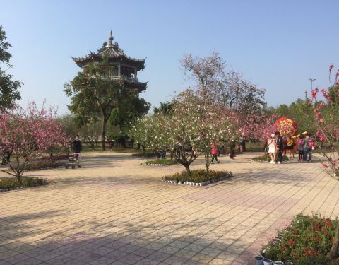 公园免费开放,自由参观,有种植油菜花和桃花,恰逢花季时,游客比较多