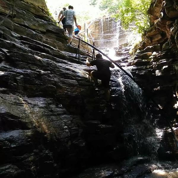 一开始我以为经水路前进是前方有船或者筏子乘坐呢。后来才知道水路就是沿着峡谷的溪水边一路前行,不过道路条件比较有趣,令你在行进过程中不觉得疲劳,反而手脚并用的很有野趣。