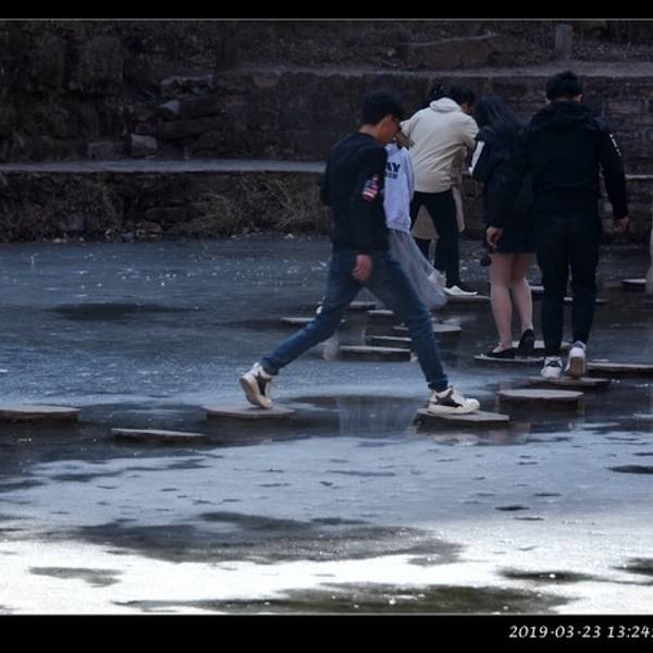 走边上呢,其实可以绕过去,不过“水莲池”的中间码放了很结实的石墩子当踏脚石供游人走路,每个人如同“跳房子”似的都得蹦着过去。