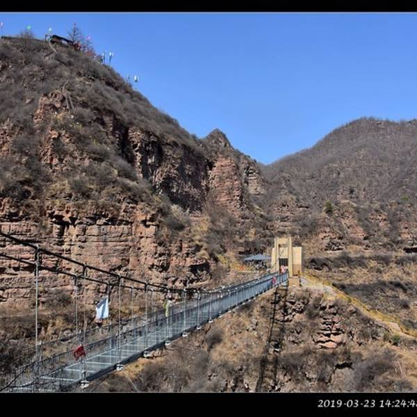 在玻璃鹊桥边上不远的地方并列着一座木质栈桥“鹊桥”,不愿意走玻璃鹊桥的游客可以选择从这里跨过山谷,继续前行。