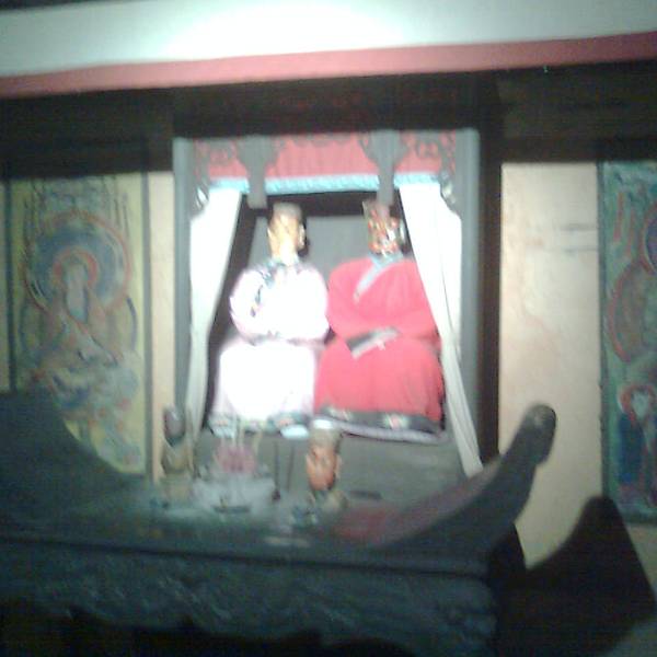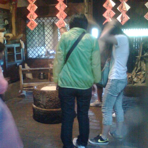 会来这里,主要是我们一行人当中有一个学社会学的孩子,我们来之前,曾经上网查了一下,据说这里收藏有北方地区许多的民俗和用具,所以一群孩子就直接去了,反正本来也准备要去丁村参观博物馆。我们先从临汾火车站乘坐去侯马的大巴,到丁村路口下车,因为还有一段距离才到景区门口,我们就搭乘了的士前往,每人8元左右。到达景区,买了60元的门票,就入内参观了。景区首先给人的感觉竟是荒凉。这里的建筑或是明清古建筑,或是仿古建筑,但似乎没什么人管理。而且游客非常少。我们几个于是可以自由参观了。博物馆共有10个展厅,里头多是一些木板、婚嫁等民俗用品,还有古人过年等所需的礼品,展出的东西还是很多的,不过就是许多物品都已经沾了灰尘,让人觉得有些可惜。