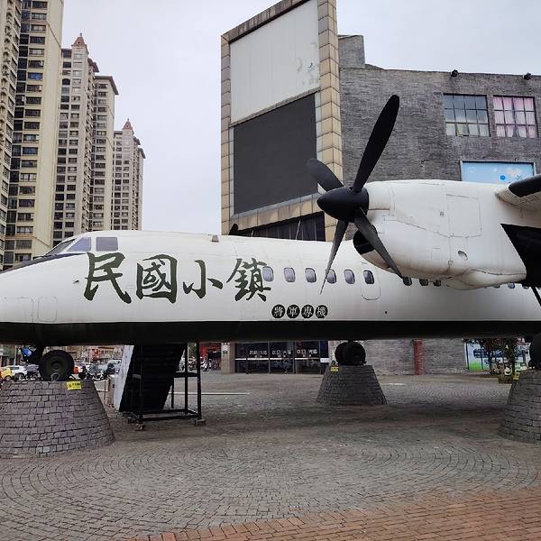 容县民国小镇最大的卖点是有旧火车、铁轨、民居,还有飞机——将军专机,飞机的对面是一个小区,高楼林立,原来容县也有那么密集的高楼。