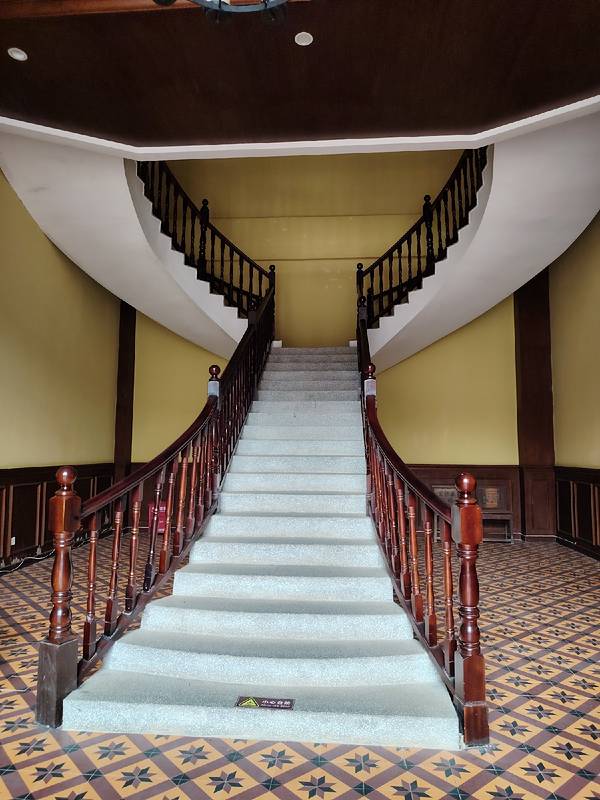 容县民国小镇入口有栋楼说是博物馆,走过去看,骑楼式的门洞还是很好看的,进门看到的楼梯也很气派,这里没有人,坐电梯上二楼想看看能不能从楼上拍街景,碰到一个人,说这里不对外的,也看不到外面,就只能下来了。