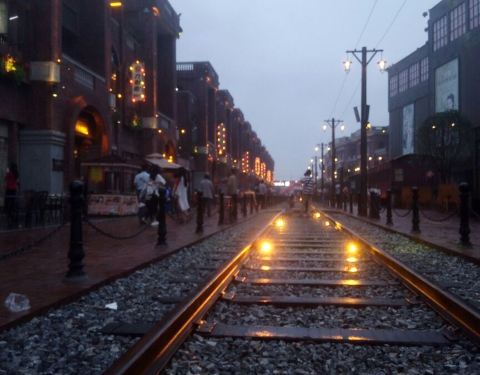 一条两百多米的街道,我们是五一去的,要收30块门票,其中有十元可以抵消消费,可以买两碗芝麻糊。里面有个将军博物馆好像营业到下午四点半。门口外面是个火车头,进去里面就是几个红、绿色两种车厢和几个雕像,街尾有个火车尾。我们是下午四点多去的,白天拍人物照,晚上拍夜景