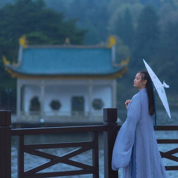 又...峰岭围抱的如琴湖,曲桥连接,森林蓊蔚。栈道在湖水周围,走成琴的形状,根根琴弦,娓娓道来整湖的情思。花间寺的梵音,迷失于远古的堤岸