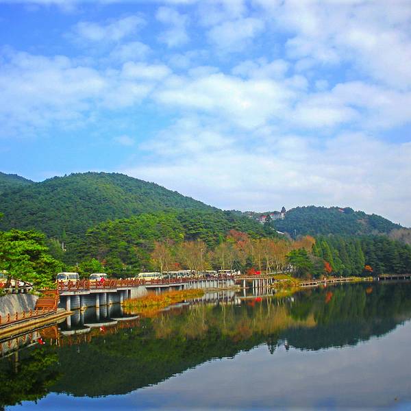 秋天的如琴湖畔,枫叶红得让人心醉看到如琴湖的第一眼,真心觉得太美了,是个超级适合摄影的地方,尤其是夕阳西下的时候,此时太阳的余晖洒在湖心的亭子上,屋顶金黄一片,与湖水相配尤为漂亮。如琴湖建于1961年,蓄水量100立方米,主要解决牯岭镇...看到如琴湖的第一眼,真心觉得太美了,是个超级适合摄影的地方,尤其是夕阳西下的时候,此时太阳的余晖洒在湖心的亭子上,屋顶金黄一片,与湖水相配尤为漂亮。如琴湖建于1961年,蓄水量100立方米,主要解决牯岭镇上居民的饮水问题,湖与花径组合一体,浩浩荡荡又不失秀丽雅致。因湖岸曲线玲珑,湖面酷似一把媚人的小提琴,加之湖边石上有古人刻“如琴”二字,微妙的结合,更具深意,故名如琴湖。如琴湖最好早上或者傍晚去,更有韵味。早上去的话初升的太阳光线直射西岸,将湖中的倒影辉映在视野里,变幻出色彩各异的图画;傍晚去的话夕阳的光线照在湖心的亭子上,屋顶满是金黄的一片,拍照非常漂亮。如琴湖距牯岭镇很近,走路步行在2公里内,买了观光车票的可坐庐山西线观光车到花径站下,下车就到,沿着湖畔而行也只要半小时不到,旁边有花径、锦绣谷2个知名景点,推荐先游花径,春秋季节最美,春季繁花似锦,绿树成荫,秋季里面有很多火红的枫叶醉人,出来后1分钟到锦绣谷门口,步行200米可到庐山著名的“天桥”,在谷内一直走到仙人洞就能看到出口,根据时间早晚可坐车继续前行或返回牯岭。“飞流直下三千尺,疑是银河落九天”;“不识庐山真面目,只缘身在此山中”;“人间四月芳菲尽,山寺桃花始盛开”;“天生一个仙人洞,无限风光在险峰”…… 作为中国最负盛名的山水诗策源地,庐山厚重的文化底蕴远远比她的自然风光更让人叹为观止,秋天的如琴湖畔,枫叶红得让人心醉。 展开