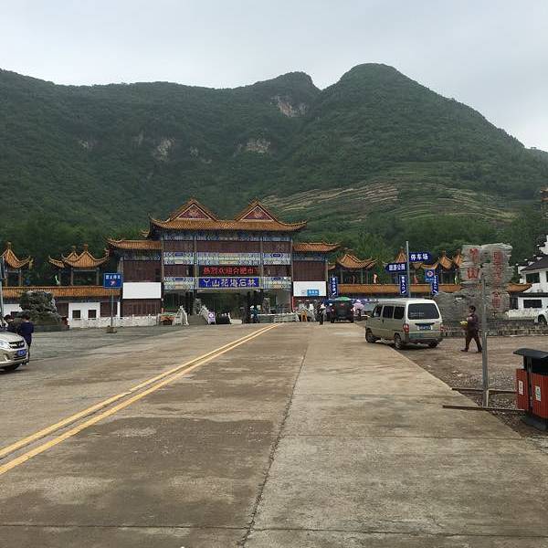 天渐黑,才从峡谷里出来,沿着山路往回走,爬上停车场,乘坐景区环保车上山,回到牡丹宾馆。