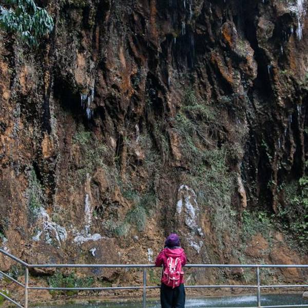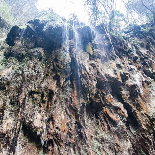 因为是冬天,并没有对瀑布报太大期望,悠哉悠哉的下山,也只是报着休闲的态度,走进后却发现,峡谷间一番绿意,并无一点冬日的萧条。瀑布虽小,却真的像珠帘一般,轻纱薄雾,飘荡而下。