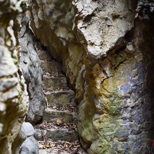 大大小小的石头形态各异,发挥想象,便能看见一个个栩栩如生的动物,嬉戏玩耍,憨态可掬。石林间不少险道,还有成90度角的台阶,想想都害怕。