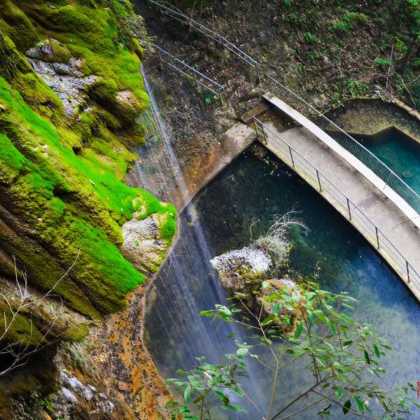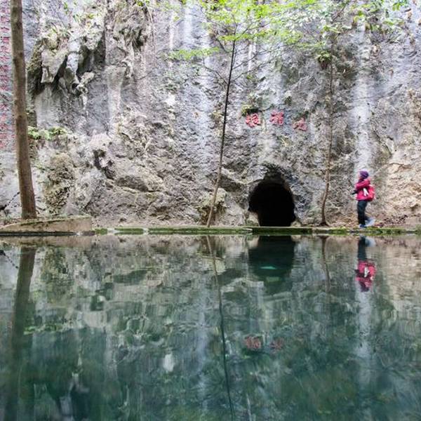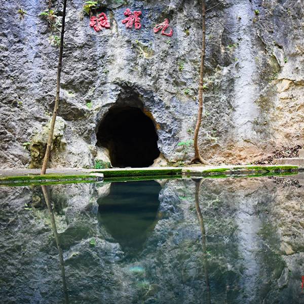 在瀑布间停留了许久,感受着这份细腻、这份绿意;九龙洞口,暗河里流出来的水冬暖夏凉,至清至洁。